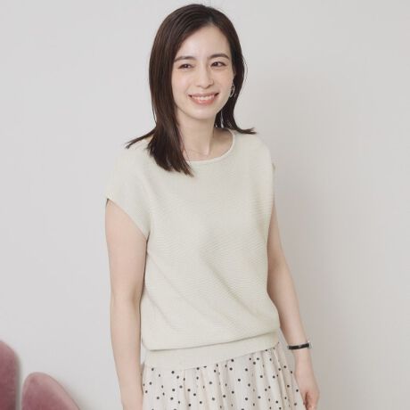 凹凸感のある表面が肌への密着を和らげ、夏でも涼しく着て頂きやすいニット素材です。