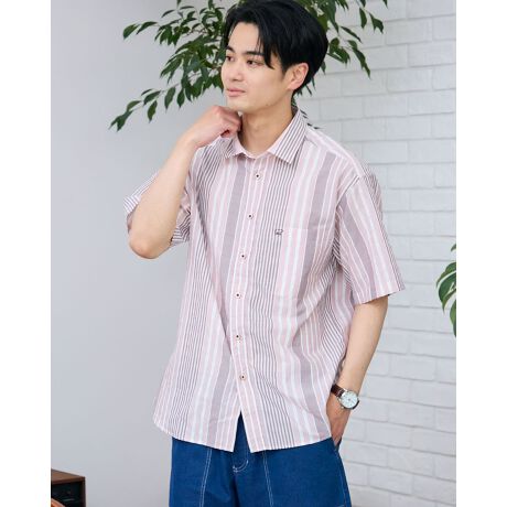 レギュラー襟のマルチストライプシャツです。部分的にサッカー組織で織った生地は、肌離れがよくさらっとした着心地が特徴です。サイズ感もややゆったりとしたリラックスシルエットです。
