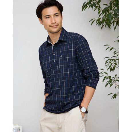 チェック長袖ポロシャツ