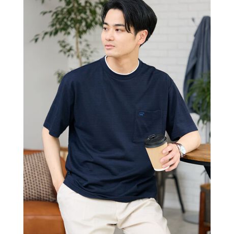 さり気ない同系色ボーダーのクルーネックTシャツです。さらっとした着心地が特徴の鹿の子素材を使用しています。襟のレイヤードがアクセントになり、着回ししやすいTシャツです。