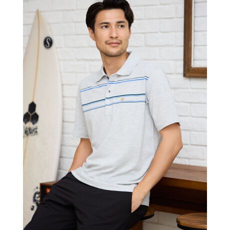 リブ襟のパネルボーダーポロシャツです。吸水速乾性に優れた鹿の子生地を使用しています。すっきりとしたボーダーは派手過ぎず、コーディネートに取り入れやすいアイテムです。