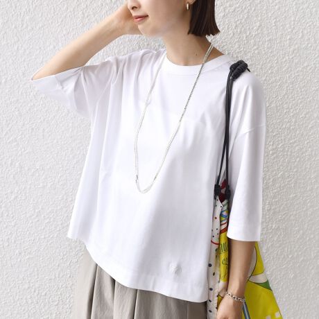 ボトムとのバランスが取りやすい着丈と5分袖がポイントのワイドTEE。