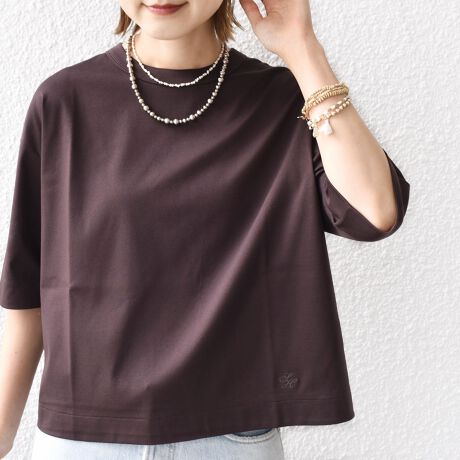 ボトムとのバランスが取りやすい着丈と5分袖がポイントのワイドTEE。