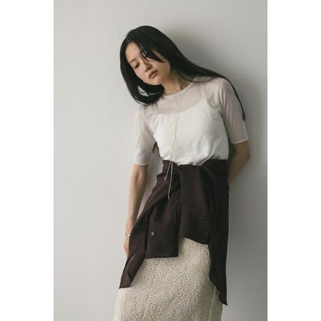 [型番:500ISS80-2371]WHT,BLK:モデル身長165cm(FREEサイズ着用)BEG,BLU:モデル身長166cm(FREEサイズ着用)ストレッチ素材で着心地の良いシアーカットソー。コンパクトな丈設定でスタイリングしやすいアイテム。ほのかな透け感で抜け感とモード感をプラスしてくれます。華奢なネックラインですっきりとした印象で着用していただけます。透け感あり、ストレッチあり。【お手入れ方法】手洗い可