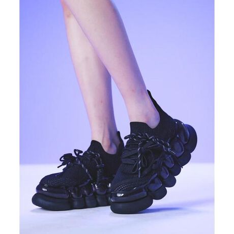 このシューズは、サイドにメッシュデザインを施したニットアッパーと3種類のシューレースが特徴です。