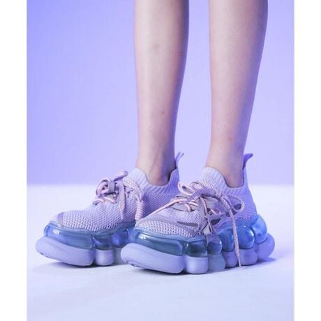 このシューズは、サイドにメッシュデザインを施したニットアッパーと3種類のシューレースが特徴です。