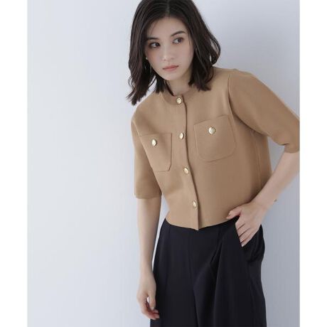 NBBで人気のエンブレムボタンニットジャケットを半袖にアップデート!エンブレムボタンをアクセントに、詰まったクルーネックデザインできちんと見えする半袖ニットジャケット。ニットなので軽くて着心地が良く、ミラノリブ編みで布帛のようなしっかりとした風合いです。コンパクトシルエットなので脚長効果を期待できます。<素材>さらっとしたハイゲージニットを使用しています。<詳細>仕様・前ボタン※モデルの着用画像の場合、光の当たり具合により、実際の色味と異なって見えることがございます。色味は、商品単体の画像をご参照ください。