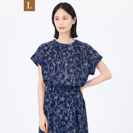 【L】【ウォッシャブル】ミジンサッカー マリンプリントプルオーバーブラウス