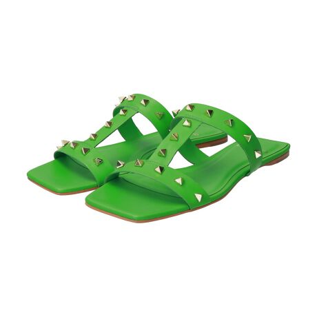 スクエアトゥにスタッズ飾りががシャープな印象のミュールサンダル。