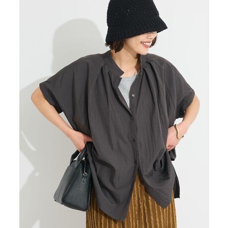 *手触りのさらりとした素材で仕立てたデザインチュニック。・ふわっとソフトなポリエステルシャツ素材。
