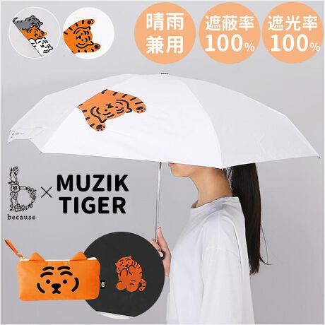 【晴れの日も雨の日も心強い味方】これ1本で安心の兼用タイプ!「because PUコーティング 晴雨兼用 折りたたみ傘」【韓国発☆ムジークタイガーとコラボ】・「無職のトラ」という意味の通り、自由気ままなトラのキャラクターが人気!(※1)韓国で人気のイラストレーションブランドです。【強い日差しに負けない機能性】紫外線遮蔽率100%、UPF50+!紫外線をしっかりカットし、日焼け対策に効果的◎【裏面加工で遮光率100%を実現】裏面にPUコーティングをプラス。生地の目を埋めることで、遮光率も抜群。【遮熱効果も高く熱中症から守る】日差しから熱を遮り、内側温度の上昇を抑える!暑さを軽減し、涼しくお出かけ。【雨でも使えて、お天気の急変に対応】耐水性にも優れた傘生地。突然の雨からもガードできて安心の晴雨兼用傘。【セーフカバー付きの手開きタイプ】傘骨をポキポキ折らず、スムーズに開閉。手指を挟みにくいよう配慮された安心設計。【サッとまとまる面ファスナーバンド】傘生地をまとめるバンドは、面ファスナー式。幅広でたたむ時も手間取らず、すっきりひとまとめ。【遊び心が効いたキュートなポーチ】ムジークタイガーをそのままポーチに☆スマートにまとめて、持ち運びもラクラク。(※2)ポーチはファスナー式です。【自分用にもギフトにもおすすめ】愛らしい絵柄に心もほっこり♪傘生地内側にも、キャラクターのプリント入り!