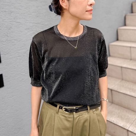 マルイウェブチャネル   /   ノーリーズ   /   トップス   /   ニット・セーター   /   《手洗い可能》《アンサンブル対応》シアーラメ天竺5分袖プルオーバーニット