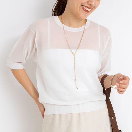 ・ほんのりラメが煌めくシアー素材の天竺編みプルオーバーニット