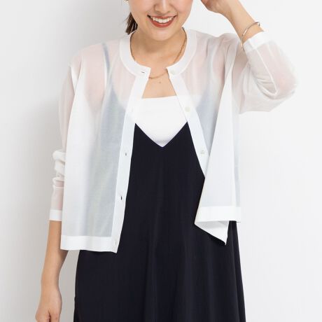 ・ほんのりラメが煌めくシアー素材の天竺編みニットカーディガン