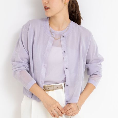 ・ほんのりラメが煌めくシアー素材の天竺編みニットカーディガン