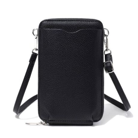 スマホケースと財布を兼用した便利なショルダー、最小限の収納のわりに1万円札も縦に入るしカードも6枚以上収納可能、ハンカチやリップなんかも入ります。PU素材なのでちょっとした雨でも大丈夫