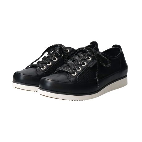 牛革とメッシュ生地を使用した通気性のよいフラットスニーカー。