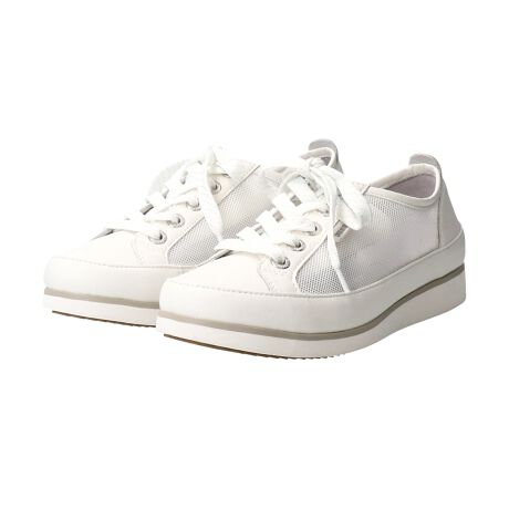 牛革とメッシュ生地を使用した通気性のよいフラットスニーカー。