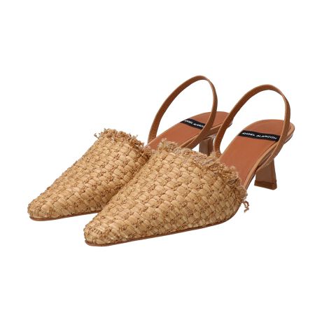アッパーに雑材を使用したポインテッドトウバックバンドパンプスは綺麗目カジュアルやリゾートスタイルにマッチするアイテムです。
