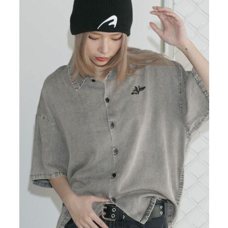 ヴィンテージ加工テンセルデニム半袖ショートシャツ