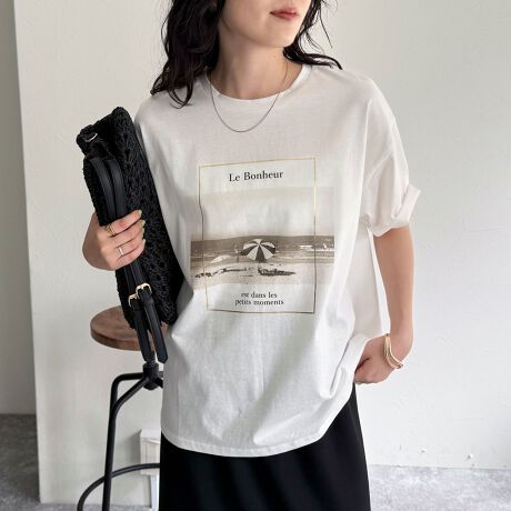 ・モノトーンのPHOTOにゴールドのラインが入った大人っぽい雰囲気で着れるPHOTOTシャツです