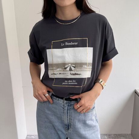 ・モノトーンのPHOTOにゴールドのラインが入った大人っぽい雰囲気で着れるPHOTOTシャツです