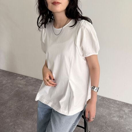 ・ふんわり柔らかな手触りが心地よいブラウスカットソーです