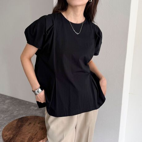・ふんわり柔らかな手触りが心地よいブラウスカットソーです