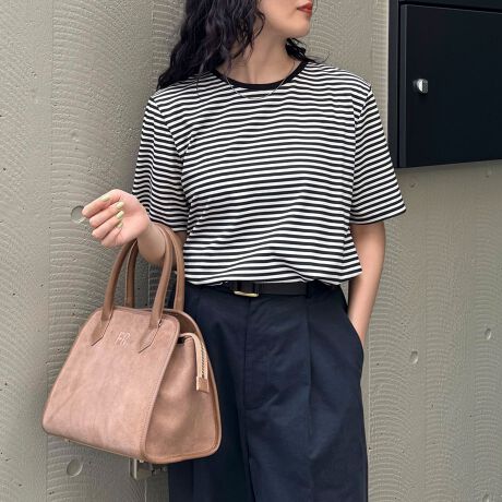 ・袖山高めの袖感がカジュアル過ぎない大人のTシャツに仕上がっています