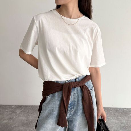 ・シンプルなデザインで夏の着回しに重宝するコットンTシャツです