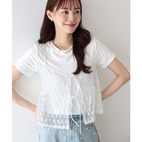 カットソーと、チュール素材のビスチェのセットアイテム。