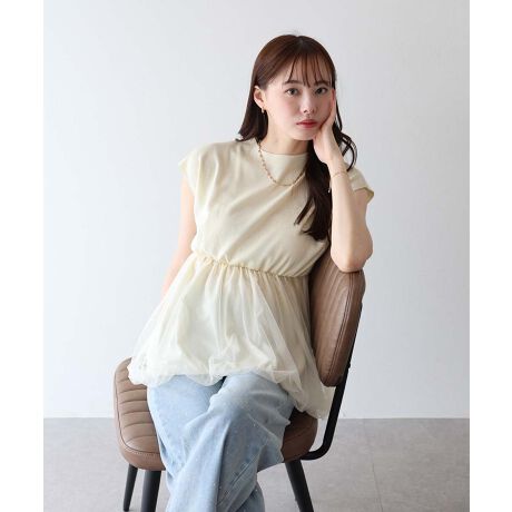 大人フェミニンなムードを演出するチュールフレンチペプラムニット