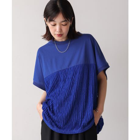 透け感の少ない張りのあるしっかりとした生地をベースに使用し、身頃はストレッチの効いた動きのあるフリル素材を使用しています。