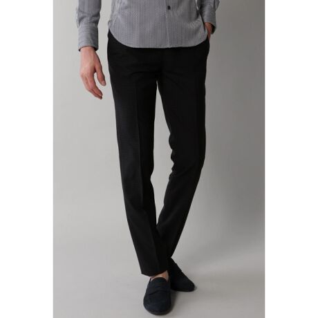 セットアップで着られるチェック柄パンツです。適度なストレッチの効いたイージーケア生地を使用しており、細身ながらストレスを感じず着用していただけます。