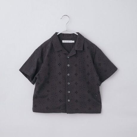 総柄レース刺繍のお洒落なオープンカラーシャツ。