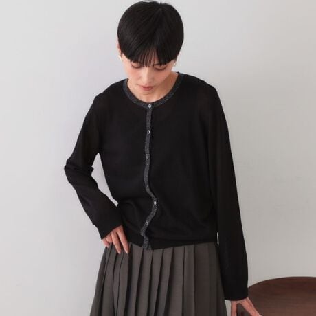 首元と前立てのラメ使いが上品なクルーネックカーディガン【アンサンブル対応】