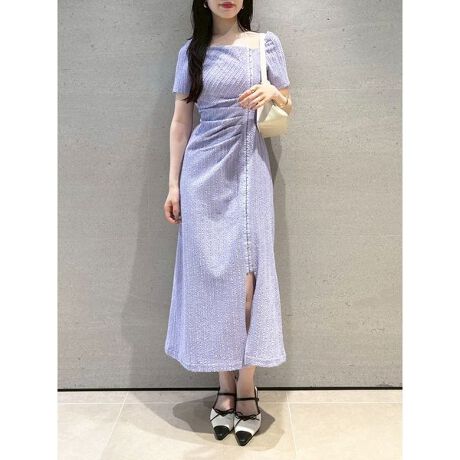 上品に開いたデコルテラインとハーフスリーブが、大人の着こなしを彩るシンプルながらも着映えするカットソーワンピース。ホックディテールが程よく辛さをプラスし、モードな印象に仕上げました。裾のホックを調整することでスリットの深さを変えられ、スタイルに合わせたアレンジが可能。サイドに施した深めのタックが、美しいシルエットを演出します。肩の部分にゴムが入っているためオフショルダーとしても着用できる2Way仕様で、1枚でエレガントにもカジュアルにも楽しめるアイテムです。