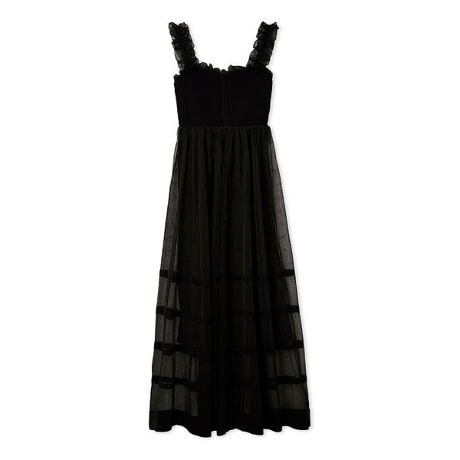 <b>【煌めく透け感ニットのティアード風デザインが愛らしいキャミソールニットワンピース】</b>