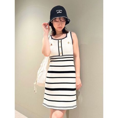 「MARY QUANT」のアイコニックなデイジーマークを刻んだオリジナルボタンが、特別感と上質さをプラスするコラボ限定ニットワンピース。高めの胸下で切り替えたデザインが縦のラインを引き立て、タイトなシルエットながらもスタイルアップ効果は抜群。立体的なボーダー編地と、襟元・袖口にあしらわれた配色ブレード風ディテールが、シンプルながらも洗練された印象を与えてくれます。限定カラーならではの特別感も相まって、ワードローブに加えるだけで春夏のコーディネートがぐっと華やかに。