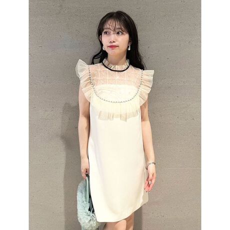 <b>【ビジューチュールが煌めくエレガントミニドレス】</b>
