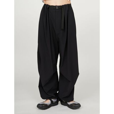 膝下にタックデザインと、裾のドロストを絞ってボリュームあるフォルムが作れる動きのあるシルエットが特徴のカーゴパンツ。