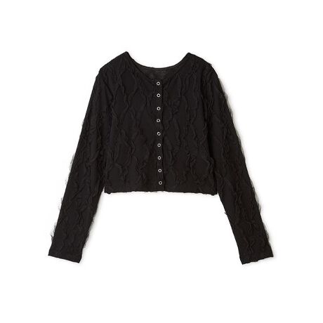 薄手の生地を使用したカットソー仕立てのカーディガンです。クルーネックデザインで、前を閉じればプルオーバーとしても着用可能。全体に施されたフリルの装飾が華やかさを演出しつつ、カットソー素材なので扱いやすさも魅力です。軽やかで涼しげな仕上がりは、暑くなる夏の時期にぴったり。デイリー使いからお出かけシーンまで幅広く活躍するお勧めの一着です。