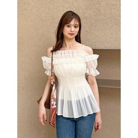 オフショルフリルブラウス