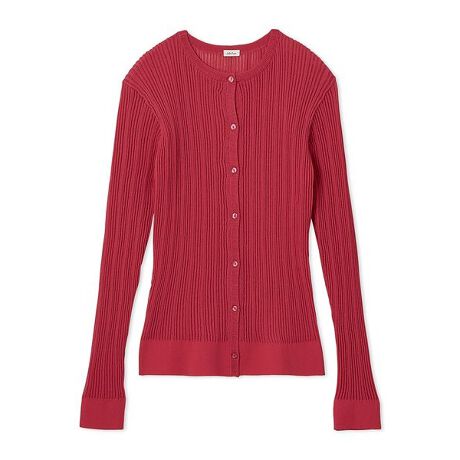 シャリ感のあるシアーなリブニット素材で、肌に張り付かずサラッとしているカーディガン。