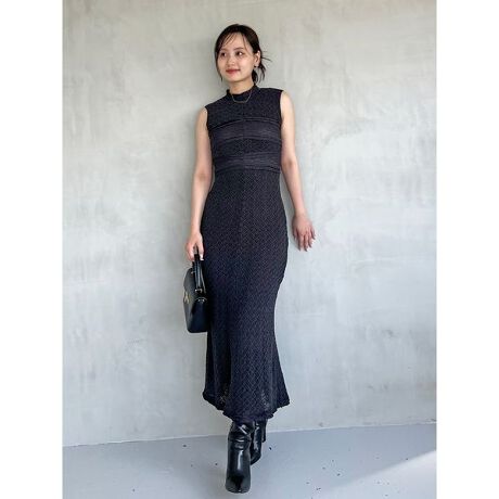 <b>【表情のあるのカットソーレース生地がリュクスな印象のレースロングワンピース】</b>