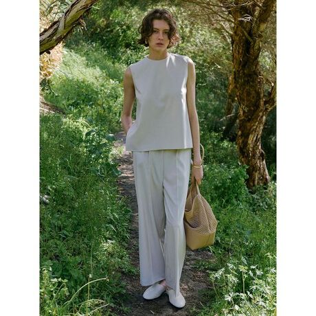 <b>【シンプルなノースリと、ワイドシルエットのパンツ、2枚がうれしいセットになって登場】</b>