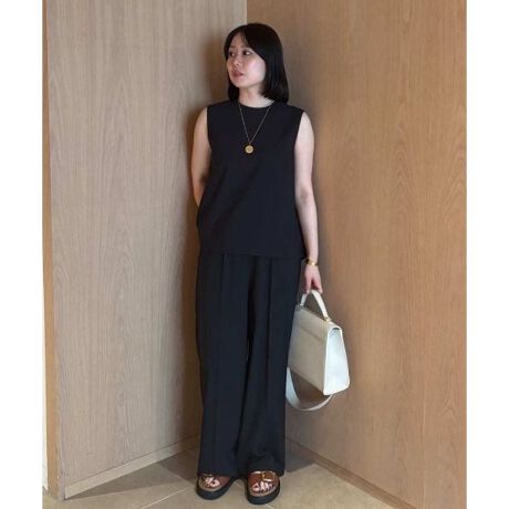 <b>【シンプルなノースリと、ワイドシルエットのパンツ、2枚がうれしいセットになって登場】</b>