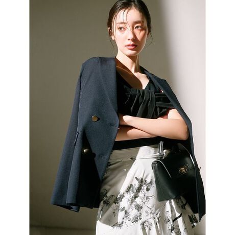 前見頃の合わを浅めに設計して女性らしい抜け感を加えた、ダブルデザインのベーシックジャケットがお目見え。ハンサムな雰囲気に、ゴールドメタルボタンがシンプルなフォルムに華やかさをプラスし、装いに品格を与えます。ウエスト部分にはダーツを取り、ややコンパクトなシルエットに仕上げているのでスタイルアップ効果も抜群です。程よい着丈で、パンツはもちろん、スカートやワンピースにも合わせやすい万能ジャケットです。手洗いできる素材を使用しており、機能性も抜群。フラップ付きのポケットが付いています。抜け感のあるティアードニットキャミワンピース(SWNO254068)合わせもおすすめです。