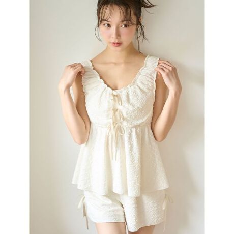 <b>3連リボンがキュートなポップコーンタンクトップ</b>