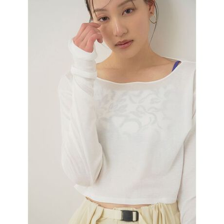 程よい透け感とクロップド丈で、ヘルシーに着こなせるトップス。ストレッチ性抜群でコットン素材特有のさらりとした心地よい肌ざわりも魅力の一つのトップス。